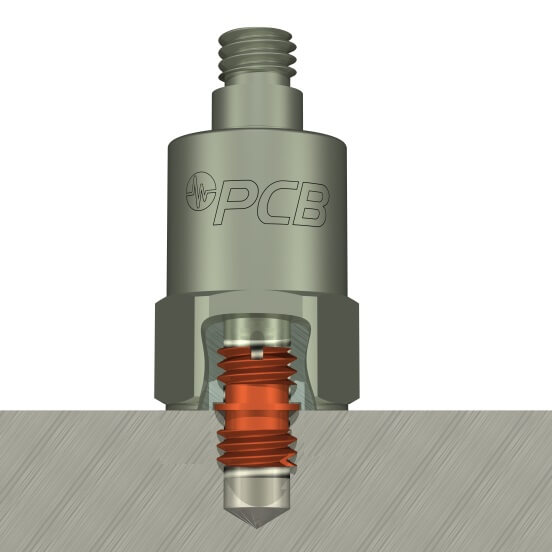 如果加速度計具有一體式螺柱或者如果它有螺紋孔并且配有可拆卸螺柱,則建議安裝螺柱。這種安裝方法為加速度計提供了非常安全的連接到測試結構,并在工廠校準期間與安裝配置相匹配。通過在測試對象上研磨或加工至少尺寸為傳感器底座的平滑區域或根據制造商規格的尺寸來準備表面。然后,根據提供的安裝圖準備螺紋孔。確保孔垂直于安裝表面。安裝加速度計,確保螺栓不會在安裝表面或加速度計底座中達到***低點。大多數PCB®安裝螺柱都有深度限制肩部,以確保螺柱不會從底部伸入加速度計底座。每個底座都包含一個沉頭孔,因此加速度計不會放在肩部。加速度從結構表面傳遞到加速度計基座。加速度計底座和結構之間的任何螺柱底部或干涉都會抑制加速度傳遞并影響測量精度。擰緊時,請勿在加速度計上施加超過建議的扭矩。可以將螺紋鎖固化合物施加到安裝螺柱的螺紋上以防止松動。