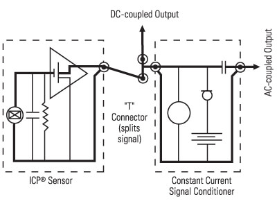 為了充分利用傳感器DTC,特別是在靜態(tài)校準(zhǔn)期間,通常必須對輸出信號進(jìn)行直流耦合。***簡單的方法是使用包含直流耦合開關(guān)的信號調(diào)理器。但是,標(biāo)準(zhǔn)信號調(diào)節(jié)器也可以通過使用“T”連接器進(jìn)行直流耦合,如圖17所示。